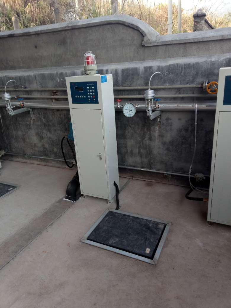 稱重秤臺(tái)由型材和板材焊接而成,稱重傳感器固定在秤臺(tái)中,待灌裝或復(fù)檢鋼瓶置于秤臺(tái)上進(jìn)行灌裝或檢斤。